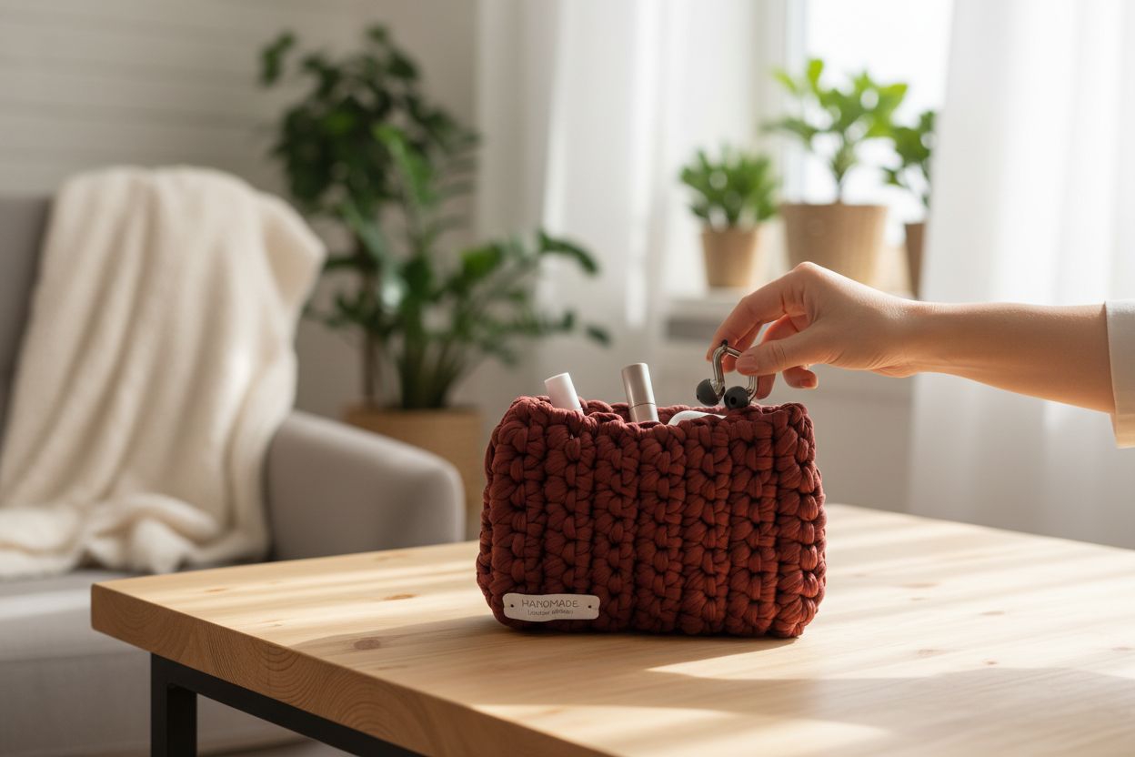 Χειροποίητο μπορντό πλεκτό πορτοφόλι, δημιουργημένο με 100% βαμβακερό μακό νήμα υψηλής ποιότητας. Πλεγμένο προσεκτικά με βελονάκι Νο8, έχει σταθερή υφή και όμορφο κράτημα, ιδανικό για καθημερινή χρήση. Στο εσωτερικό του είναι φοδραρισμένο με 100% βαμβακερό φλοράλ ύφασμα, ραμμένο στο χέρι με προσοχή στη λεπτομέρεια, προσθέτοντας κομψότητα αλλά και αντοχή. Μια πρακτική και κομψή επιλογή για όσους αγαπούν το αυθεντικό χειροποίητο.