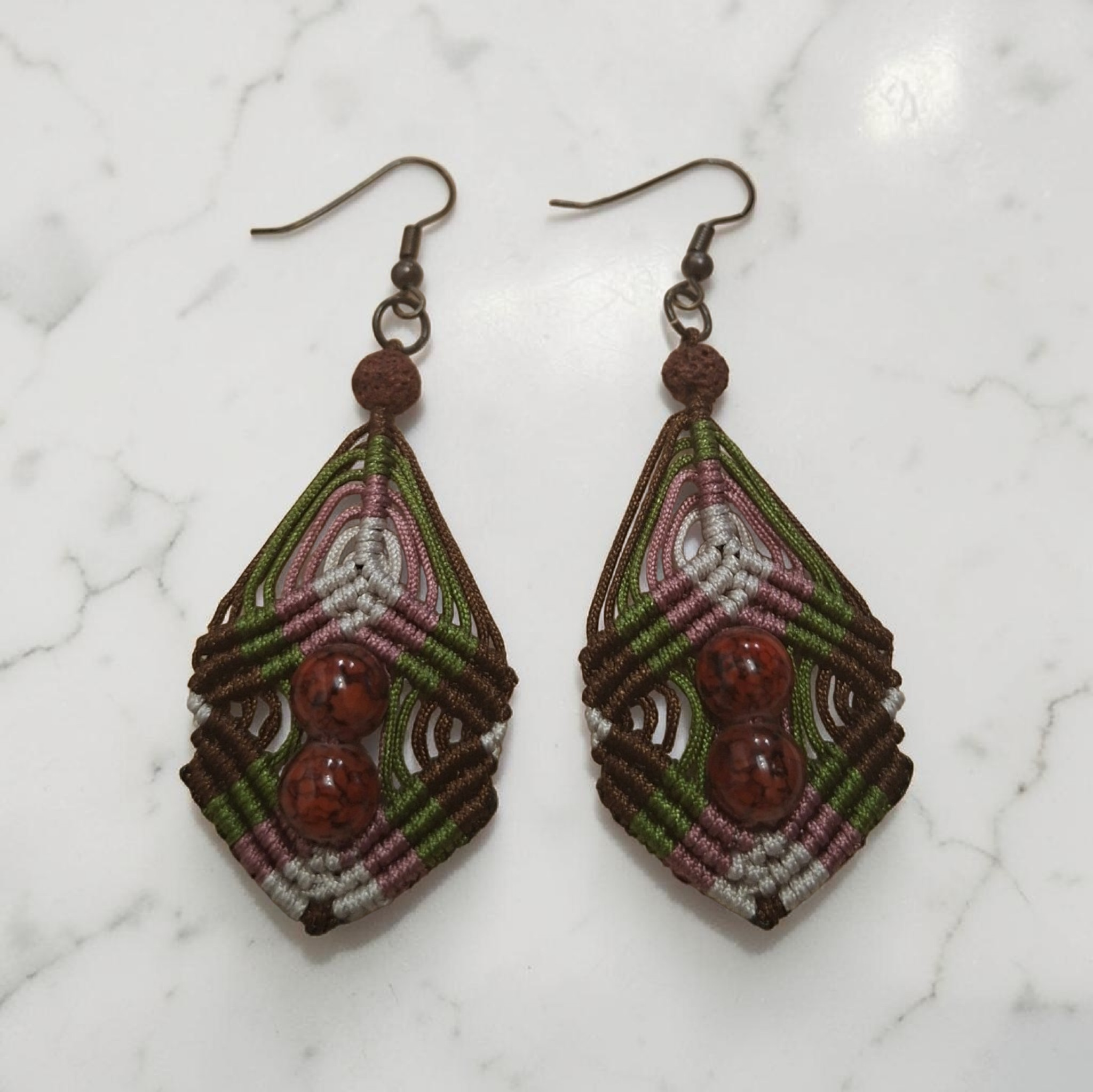 Χειροποίητα Σκουλαρίκια Μακραμέ “Earth Geometry” – Chocolate, Olive & Terracotta