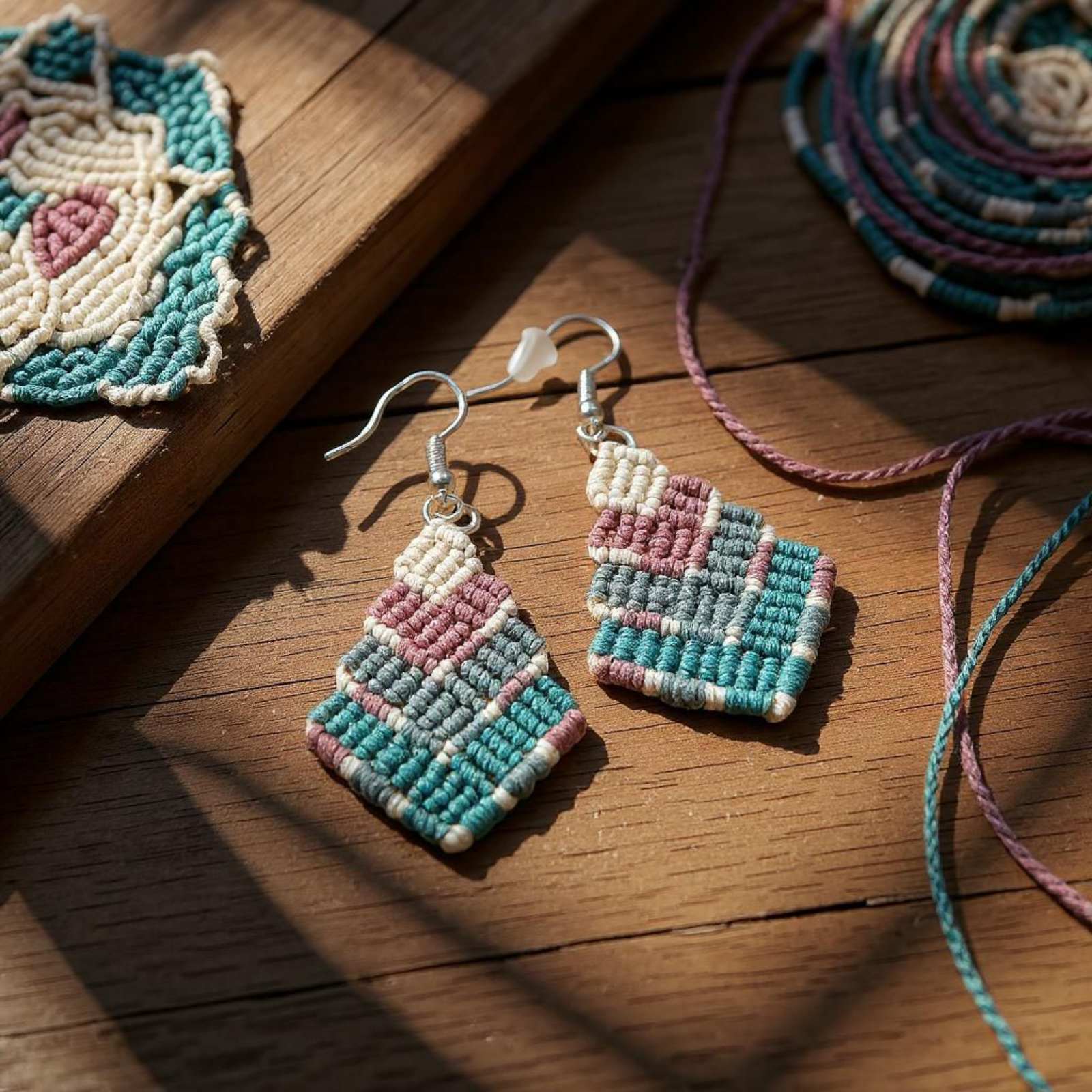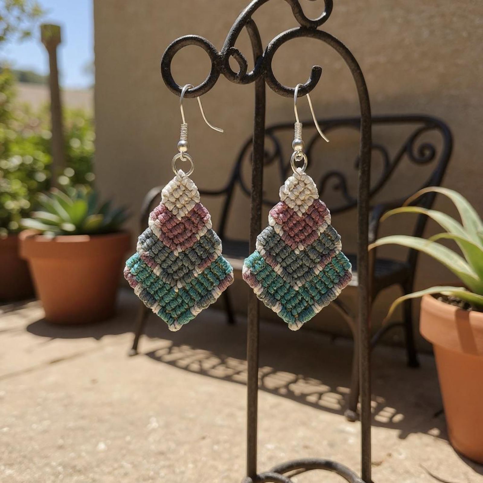 Χειροποίητα Σκουλαρίκια Μακραμέ “Geometric Earth” – Boho Chic Συλλογή