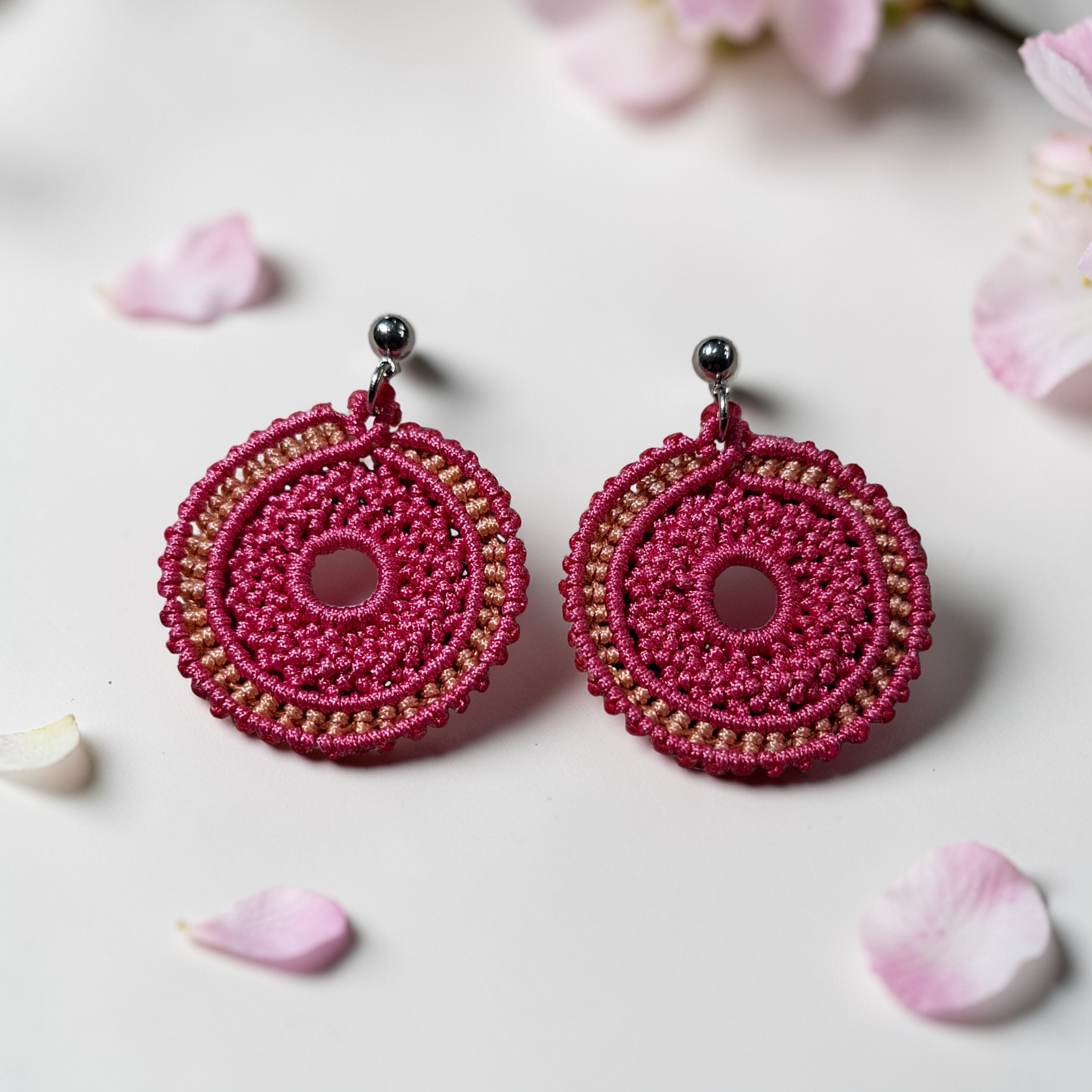 Χειροποίητα Σκουλαρίκια Μακραμέ “Mandala Rose” – Fuchsia & Gold