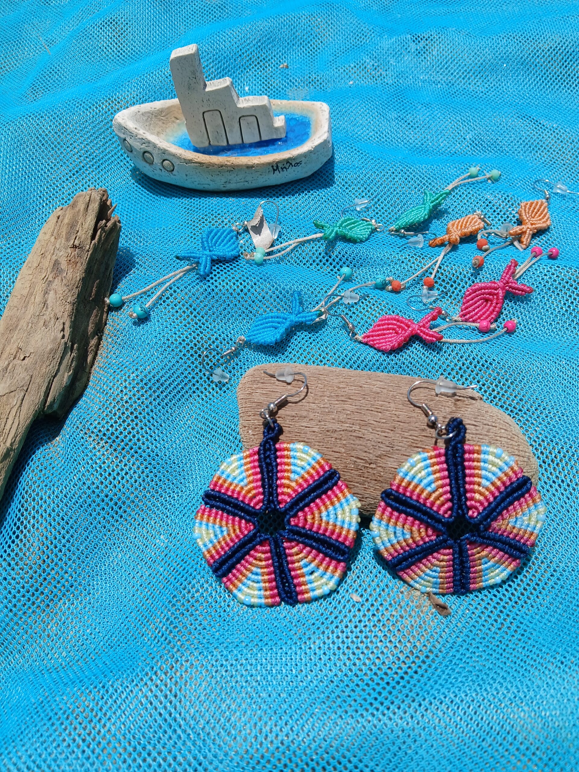 Χειροποίητα Μακραμέ Σκουλαρίκια “Sea Star” – Πολύχρωμα Mosaic Circles
