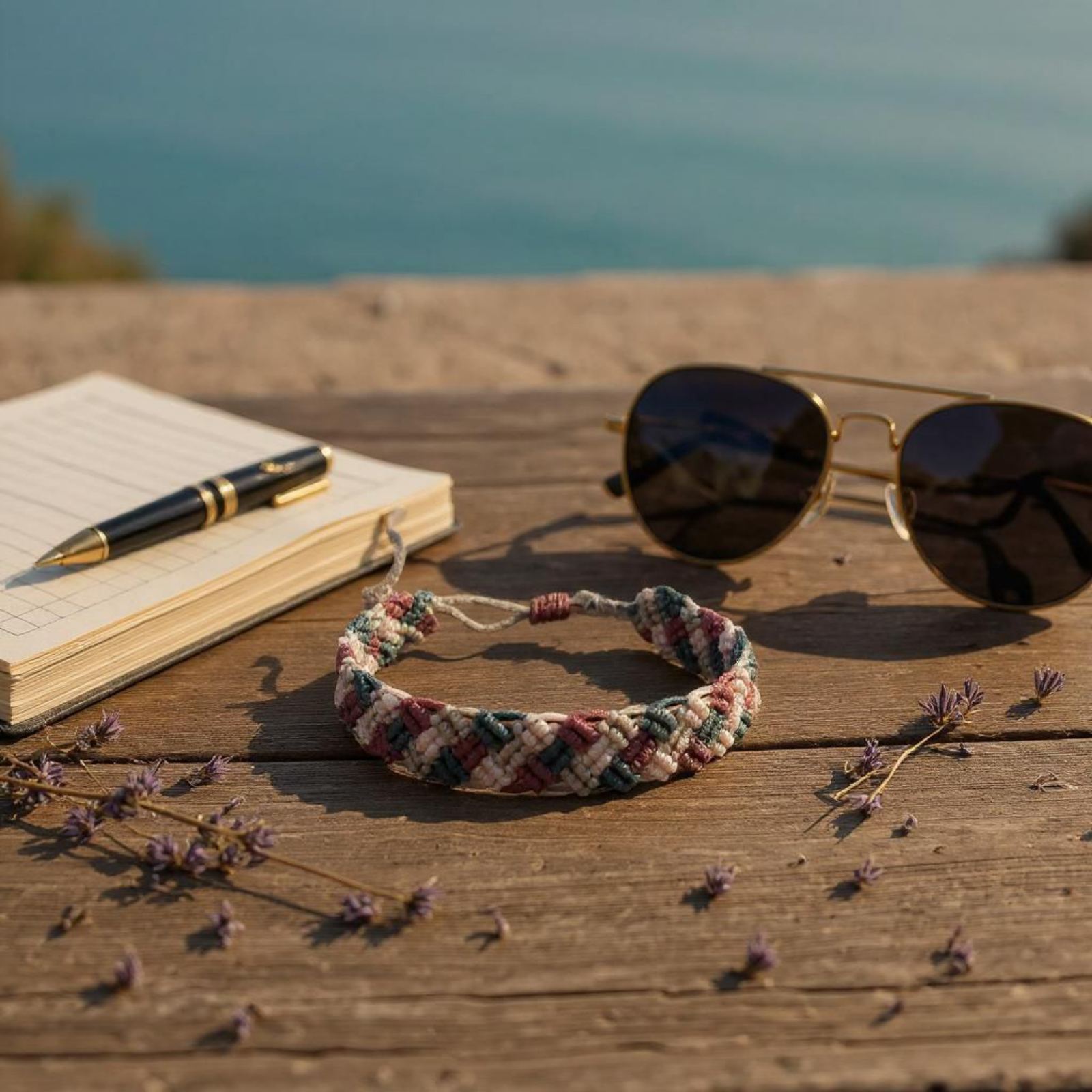Κρατήστε τις αναμνήσεις του καλοκαιριού ζωντανές με το βραχιόλι “Summer Journal”. Ένα κόσμημα που συνδυάζει την πολυπλοκότητα της τεχνικής micro-macrame με μια παλέτα χρωμάτων που θυμίζει ηλιοβασίλεμα σε παλιά καρτ-ποστάλ, ιδανικό για όσους αγαπούν το αυθεντικό και το χειροποίητο.